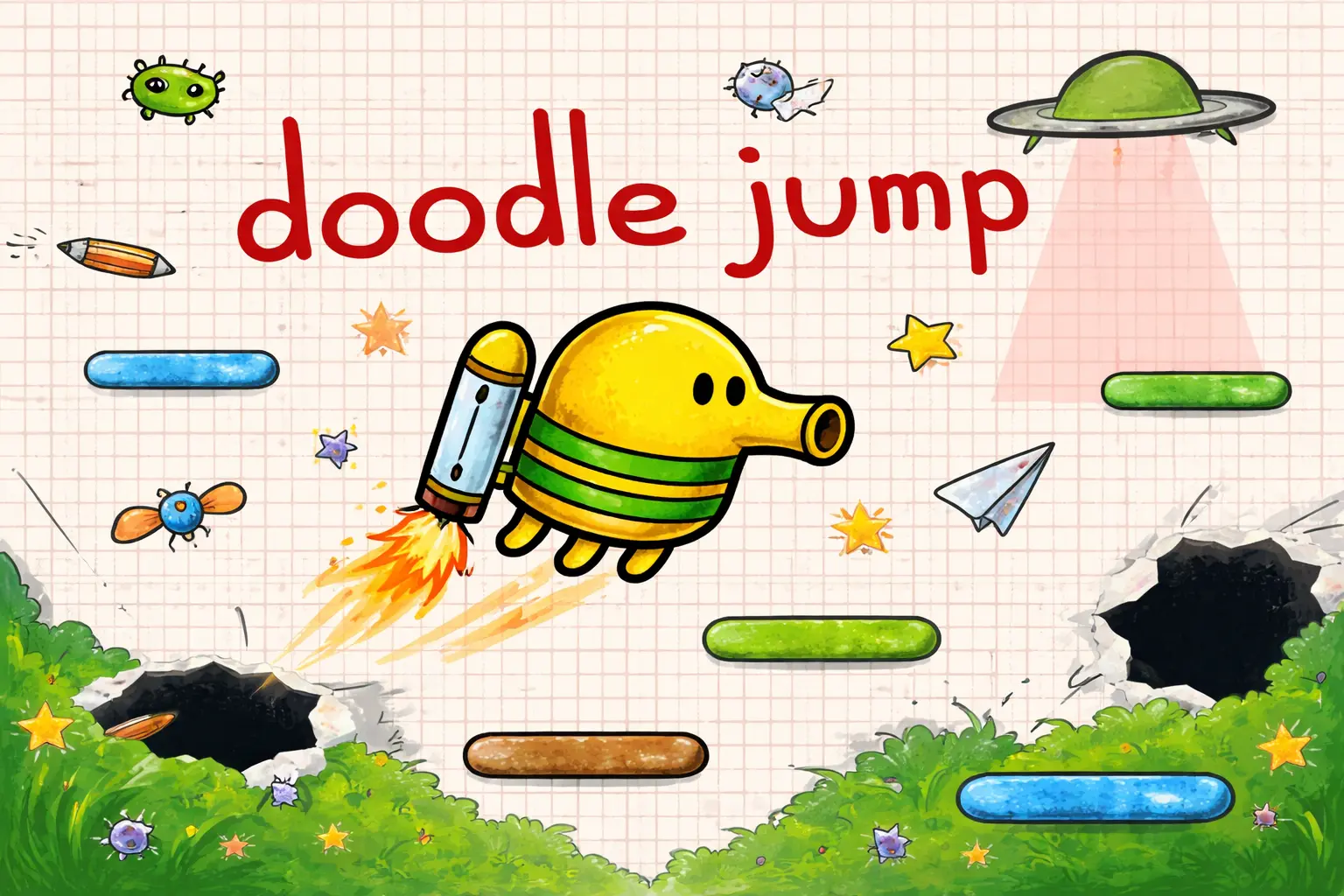 Doodle Jump is an endless arcade platform game where you guide a quirky character called the Doodler as he jumps upward across floating platforms while trying to reach the highest score possible.